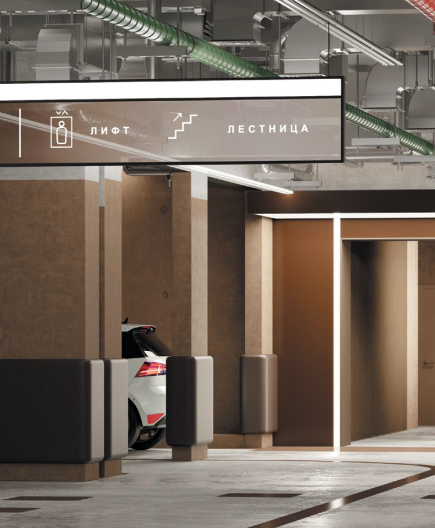 - Безопасный расширенный въезд на парковку с высотой проезда 2,6 м (локально ограничена до 2,4 м)