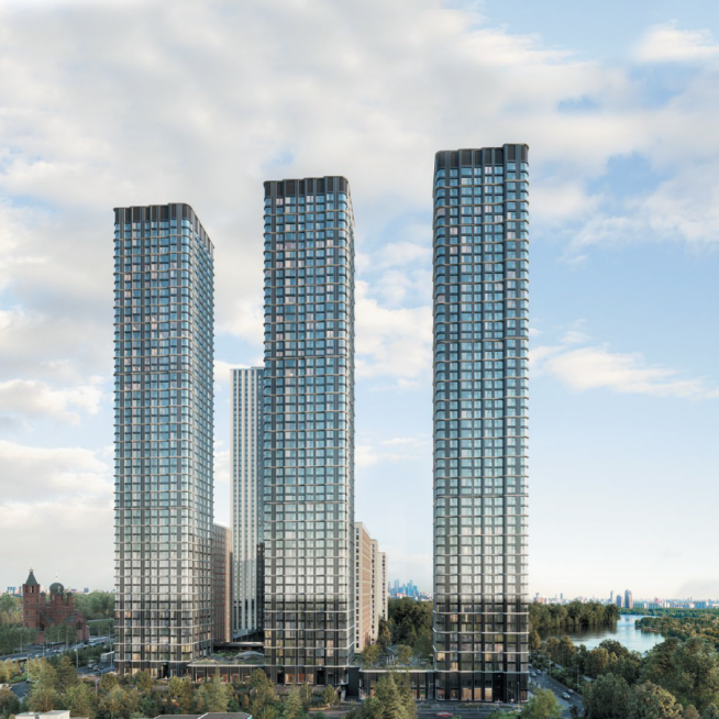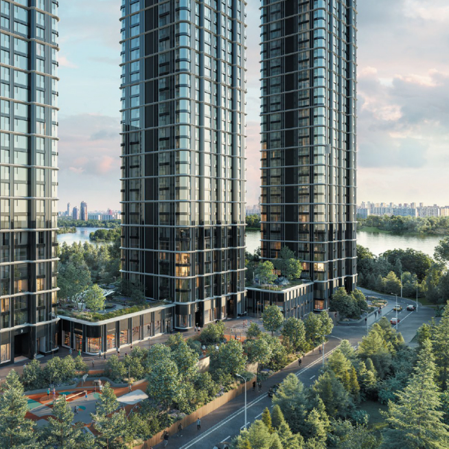 Жилой комплекс City Bay — это красивые стройные башни в окружении разнообразных общественных пространств на берегу реки. Разновысотность объемов и проработанность их очертаний позволяют сформировать очень активный силуэт — элегантный символ дальнейшего активного развития Москвы.