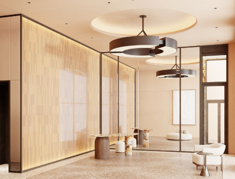 - Высокие потолки и панорамное остекление лобби