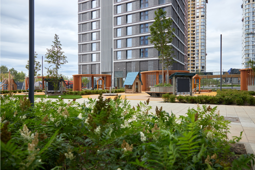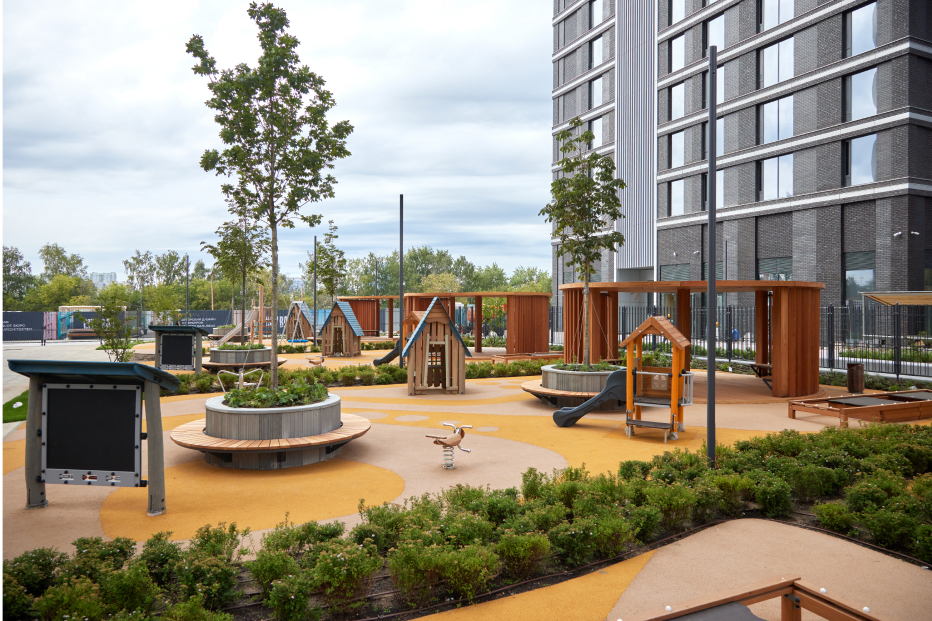 Масштаб позволил нам сделать то, о чем мы давно мечтали. На большой поляне квартала смогут собираться почти все дети City Bay — для них мы проектируем уникальную по размерам деревянную площадку на песке.